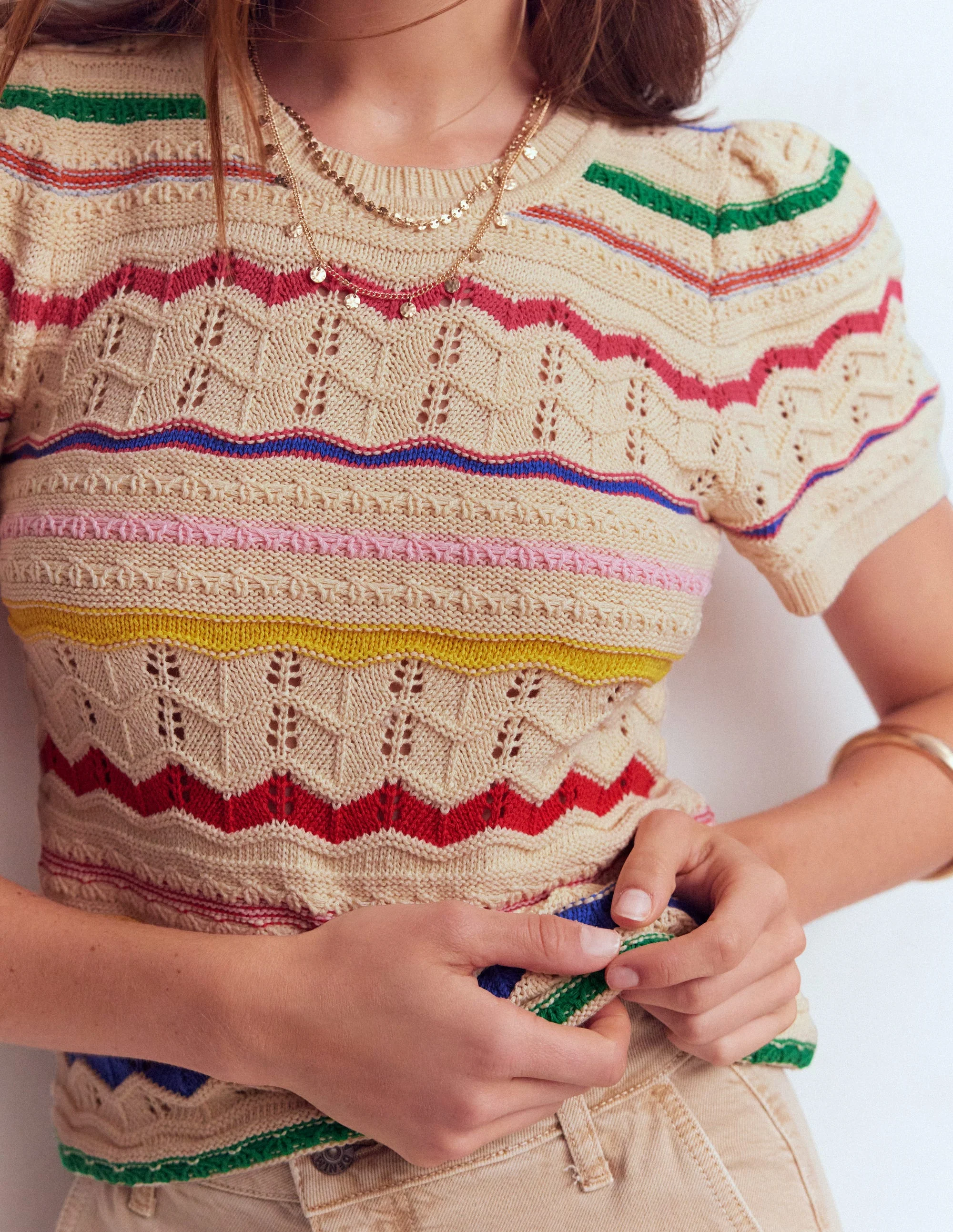 Monica Pointelle T-Shirt-Multi Stripe